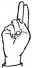 На ћирилици написано МАЈА ТУБИЋ састоји се из 9 слова [?]. Исписано ћириличном једноручном азбуком за глувонеме: